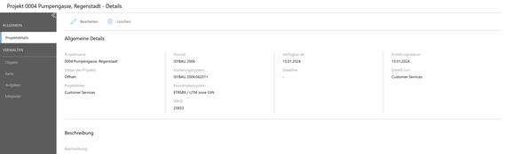 - Projekte: In der Kategorie Projekte können alle laufenden und abgeschlossenen Projekte verwaltet werden. Nutzer haben die Möglichkeit, Projekte zu erstellen, zu bearbeiten und deren Fortschritt zu überwachen.